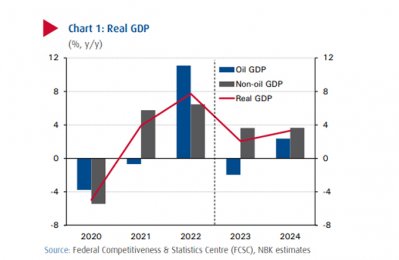 However, oil GDP overall will barely grow in 2023-24, in line with OPEC+ production cuts. This would bring oil production to 3.1 mb/d by the end of 2024, well below projected capacity of 4.3 mb/d (and possibly 5 mb/d by 2027), providing ample room for further increases. Meanwhile, gas production is expected to grow by 9% from the current level of 5.5 bcf/d by mid-2025, as the government aims to make the country self-sufficient in gas by 2030. Current natural gas consumption is about 6.7 bcf/d,