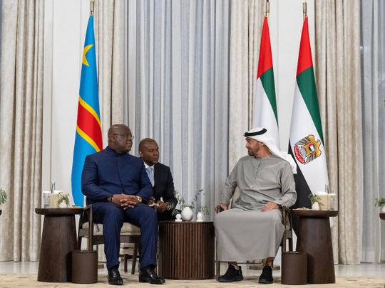 Abu Dhabi: President His Highness Sheikh Mohamed bin Zayed Al Nahyan received DRC President Felix Tshisekedi, who is on a working visit to the UAE, at the Qasr Al Shati Palace.